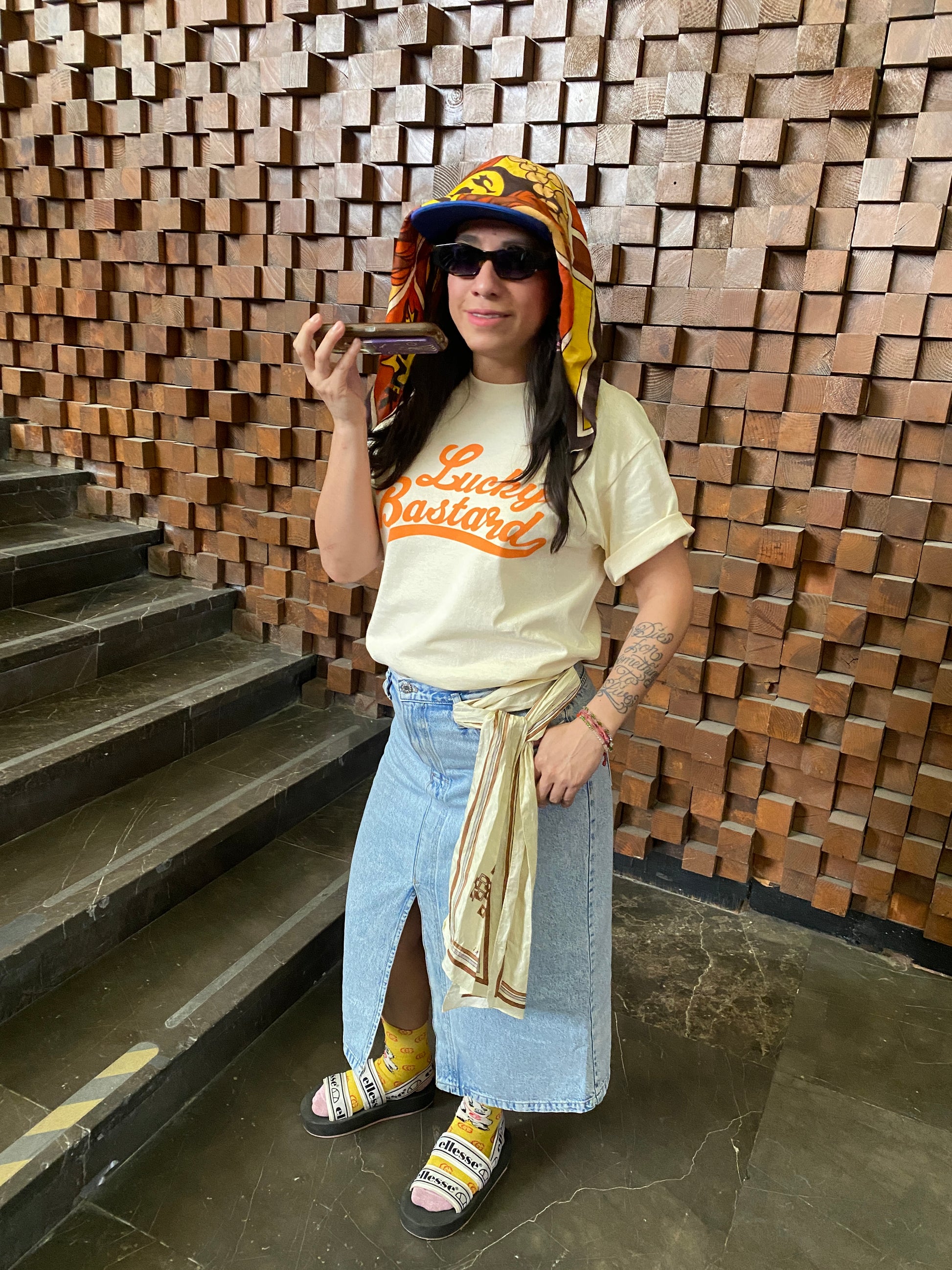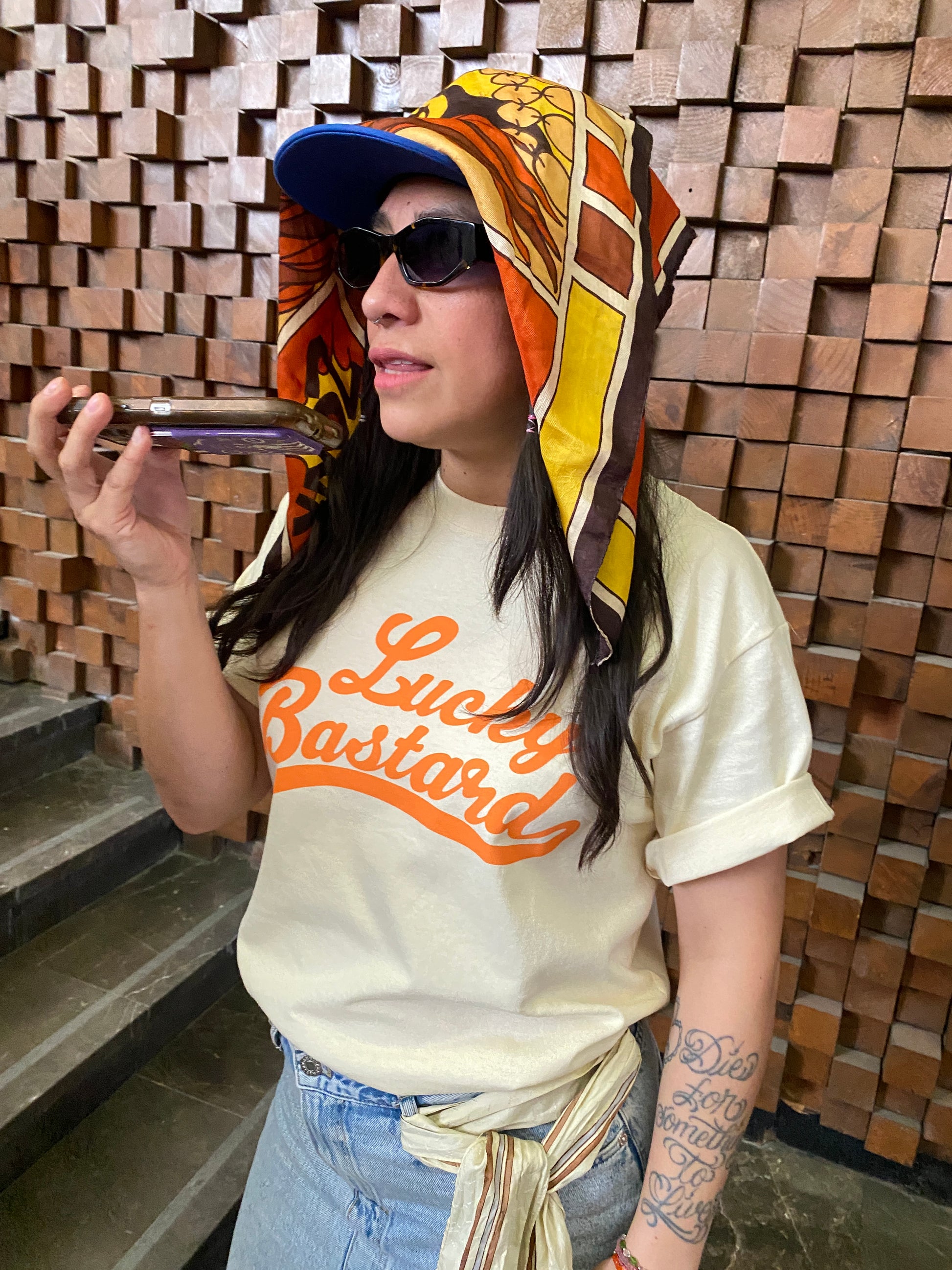 - Etiqueta: Etiqueta cosida con la marca "Lucky Bastard"